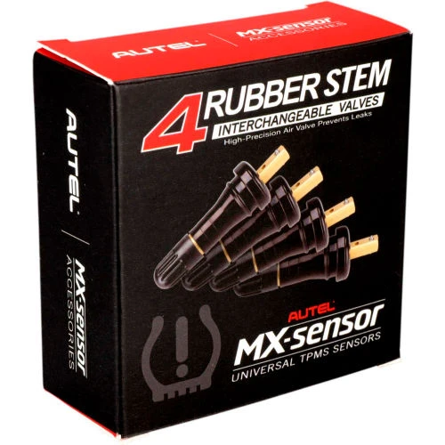 MX-Sensor rubber valve kit. Compatible with 433 MHz and 315 Mhz Mx-Sensors with interchangeable, click-in, press-out valve stems. Kit includes four rubber stems.