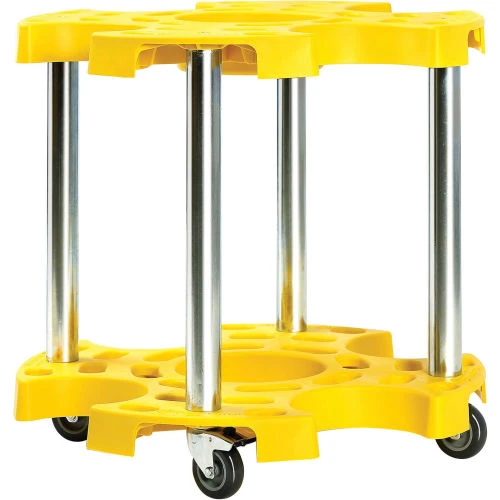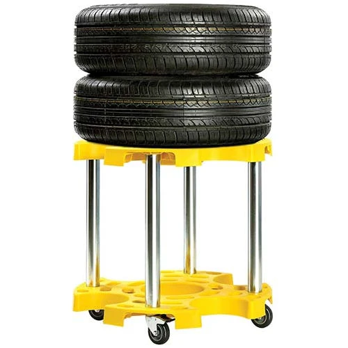 The Tire Taxi EX™ is an extended height version of the Tire Taxi™. With an overall working height of 23″ the Tire Taxi EX™ creates a more ergonomic working height for the technician that helps to improve work posture, avoids unnecessary lifting and reduces strain on the back, knees and shoulders. The Tire Taxi EX™ makes moving tires through service bays and storage areas simple, fast, and safe. The Tire Taxi EX™ is made of high impact, injection molded polyethylene, in an easy to see safety yellow. The compact size, ergonomic design and light weight makes the Tire Taxi EX™ easy to handle and store when not in use.