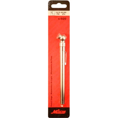 Milton (S-920) Pencil Tire Pressure Gauge with Tread Depth Gauge. This single head Pencil tire pressure gauge comes with both a deflator button and built-in tire tread depth gauge. Unlike our competitors, our Milton pencil gauges use machined parts. Offers a range of 10 to 70 PSI or 60-500 kPa. Tire gauges provide accurate, long life with trouble-free performance. Made from durable plated brass with 4 side nylon indicator bar. Always check tire pressure when tires are cold. DRIVE SAFELY: Maintaining proper tire pressures improves vehicle handling, reduces risk of tire failure, improves fuel economy, and increases the life of your tires.