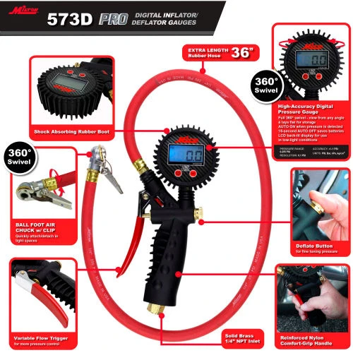 - Digital Inflator Gauge w/rugged comfort-grip handle