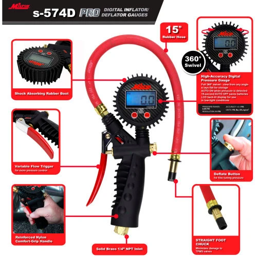 - Digital Inflator Gauge w/Rugged Comfort-Grip Handle
