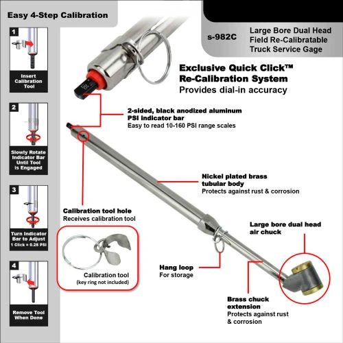 EASY CALIBRATABLE: Quickly and simply recalibratable service gauge with just a click. Manufactured with a premium anodized aluminum stick lasered for readability and accuracy. Pressure Gauge can be use on all kinds of automotive, Industrial and Farm & Agriculture vehicles tire valves (Schrader valve). Adequately checks tire pressure to save on fuel, time and money.