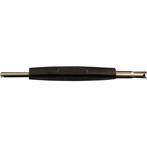 Valve core tool is for the removal and insertion of valve cores. One end for is for a standard bore, while one end is for large bore valves. With an overall length of 5″, this valve core tool has a 3″ handle length.