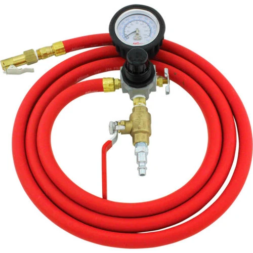 Automatically fill your tires with this unique inflator. Equipped with swiveled grip chuck for quick orientation and an on off shutoff valve, this tool has everything needed to get your wheels back on the road quickly. The six foot hose whip keeps the technician outside of the trajectory zone when inflating tires, meeting OSHA Regulation 1910.77. The included heavy duty regulator offers a maximum inlet pressure of 250 PSI, while the durable dial gauge with rubber boot will read a PSI range of 0 to 160 PSI.
