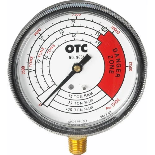- Four scales: 0-10,000 PSI, 0-55 ton, 0-75 ton, and 0-100 ton
