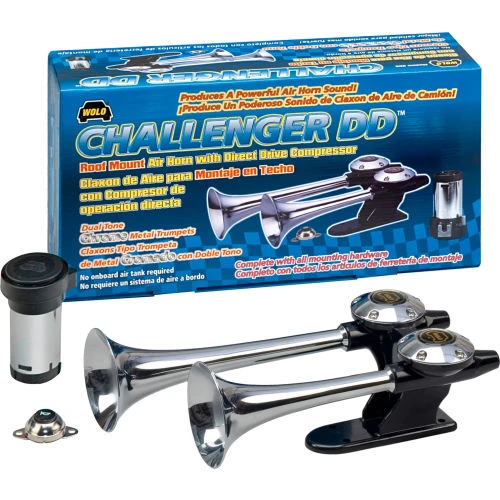 | Description | Challenger Heavy Duty Roof Mount Air Horn Dual Trumpet With Compressor 24 Volt |